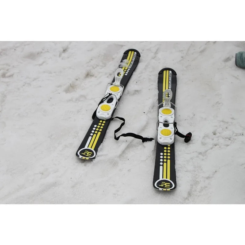 - Bindings-Are designed for Adult men, women or kids with a one size fits most mini ski binding. The Ski board ski blades with non release bindings are easily adjustable for adult sizes up to size 13 mens ski boot size.