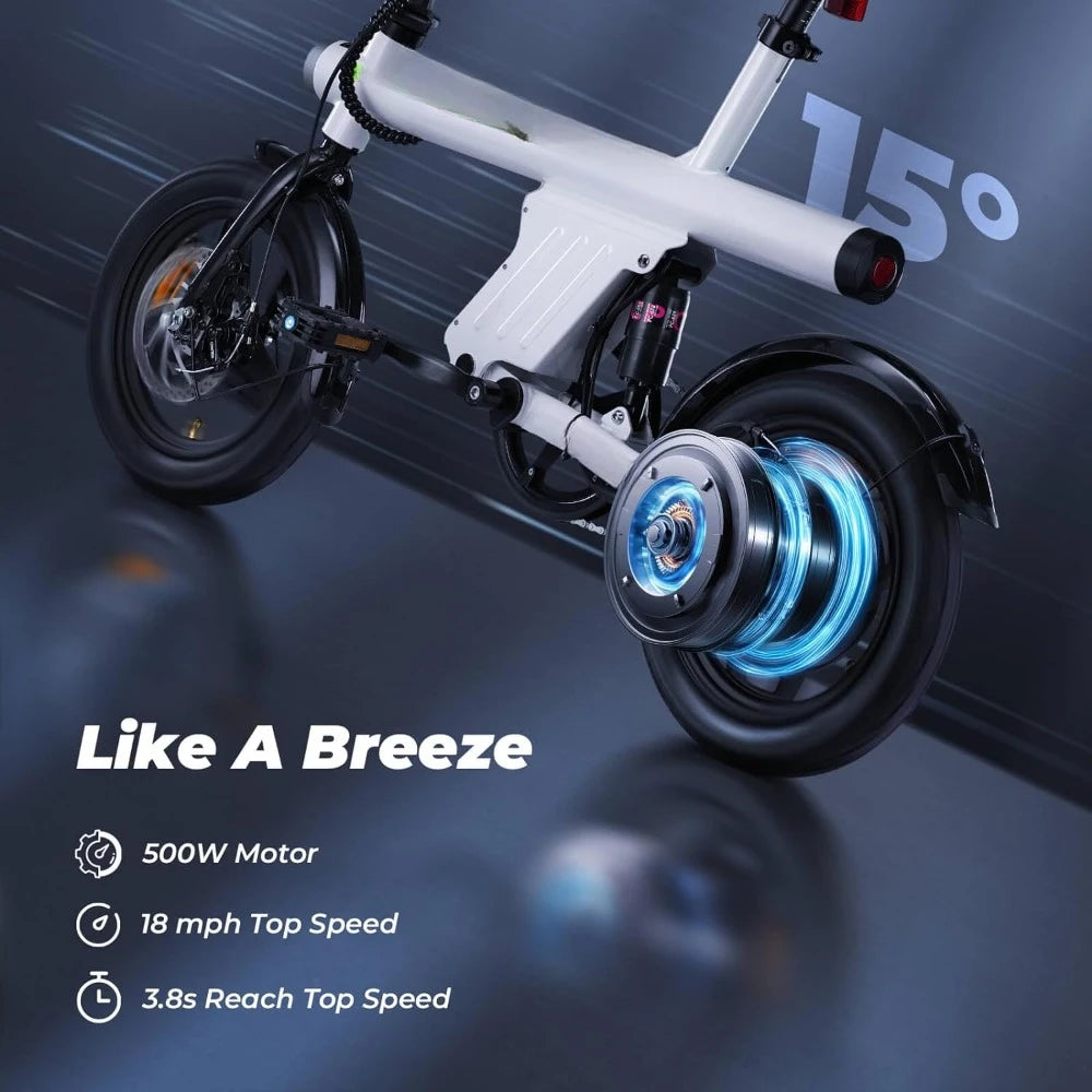 - 【Smart Uphill】- A 14 inch ebike doesn't have to be this nimble, but it is. Our 500W motor, seamlessly integrates intelligent algorithms. Effortlessly conquer inclines with automatic recognition and tailored assistance. Experience a breezy 15° uphill journey, complemented by a top speed of 20mph.
