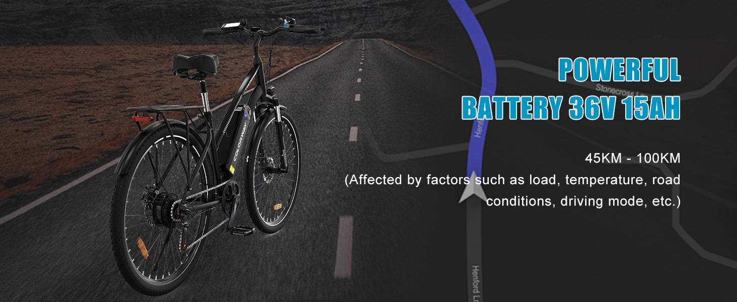 ✅【Powerful Performance】 - Equipped with a 250W brushless rear hub motor and a 36V 15AH removable lithium-ion battery, this E BIKE offers you great performance, it can easily overcome all obstacles and slopes of up to 25 degrees. It reaches a top speed of 25km/h and a maximum range of 45-100km (depending on riding style, weight, road conditions, wind, etc.).