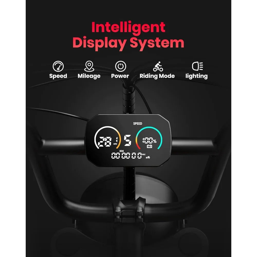 - 【Digital LCD Display】Stay in control and informed with the LCD display screen that provides real-time information on your speed, battery level, and more. Enjoy a smooth and comfortable ride, even on rough terrain, with the dual suspension system that absorbs bumps and shocks, ensuring every journey is a pleasurable one.
