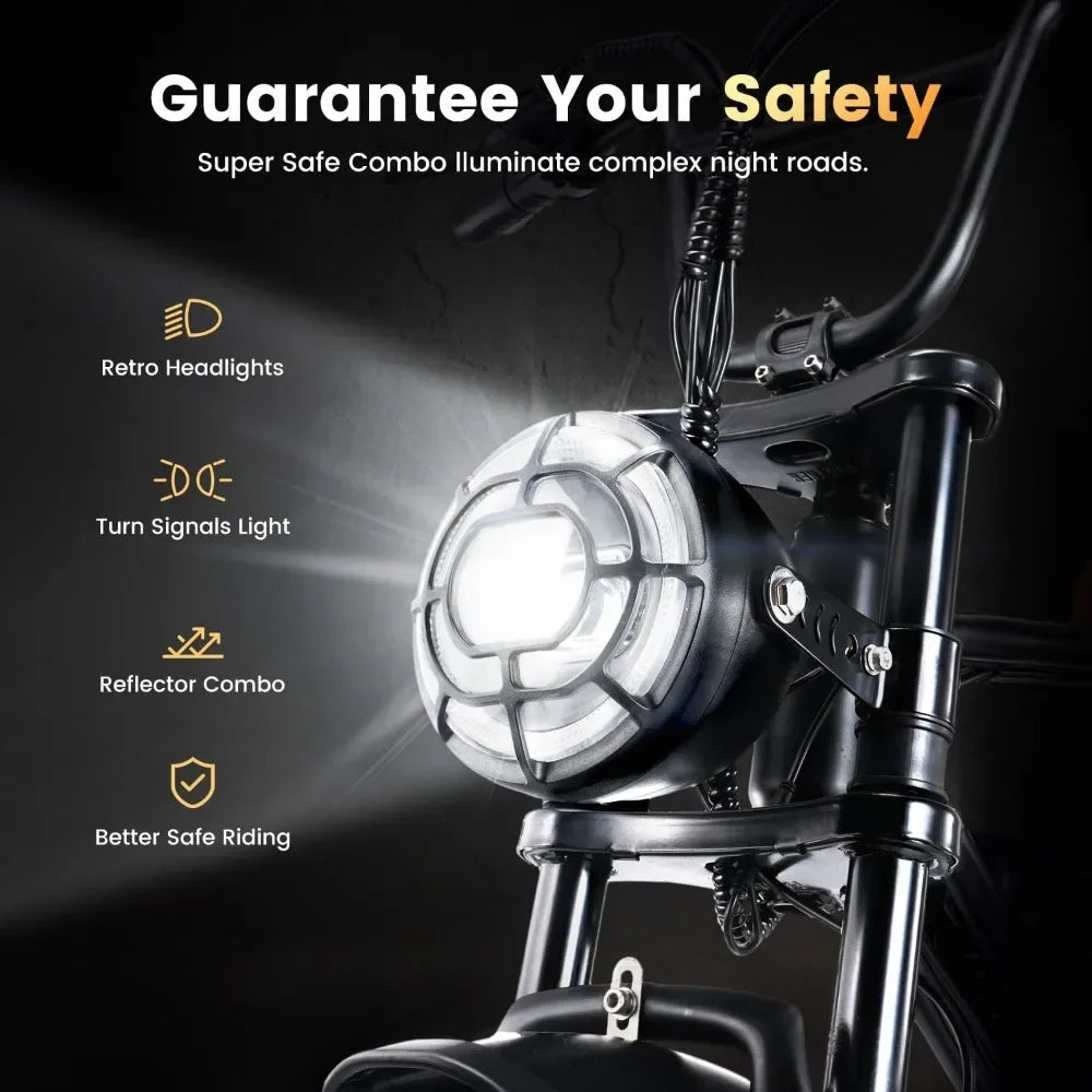 - ASSURED SAFETY FOR YOUR TRIP: The Light System and Reflective Group Design Greatly Improves Ride Visibility, Especially in Complex Road Conditions at Night.Disc Front and Rear Brake Provides More Powerful Braking Force, Enabling the Rider to Decelerate and Stop More Quickly, Improving the Safety of the e bike Riding.