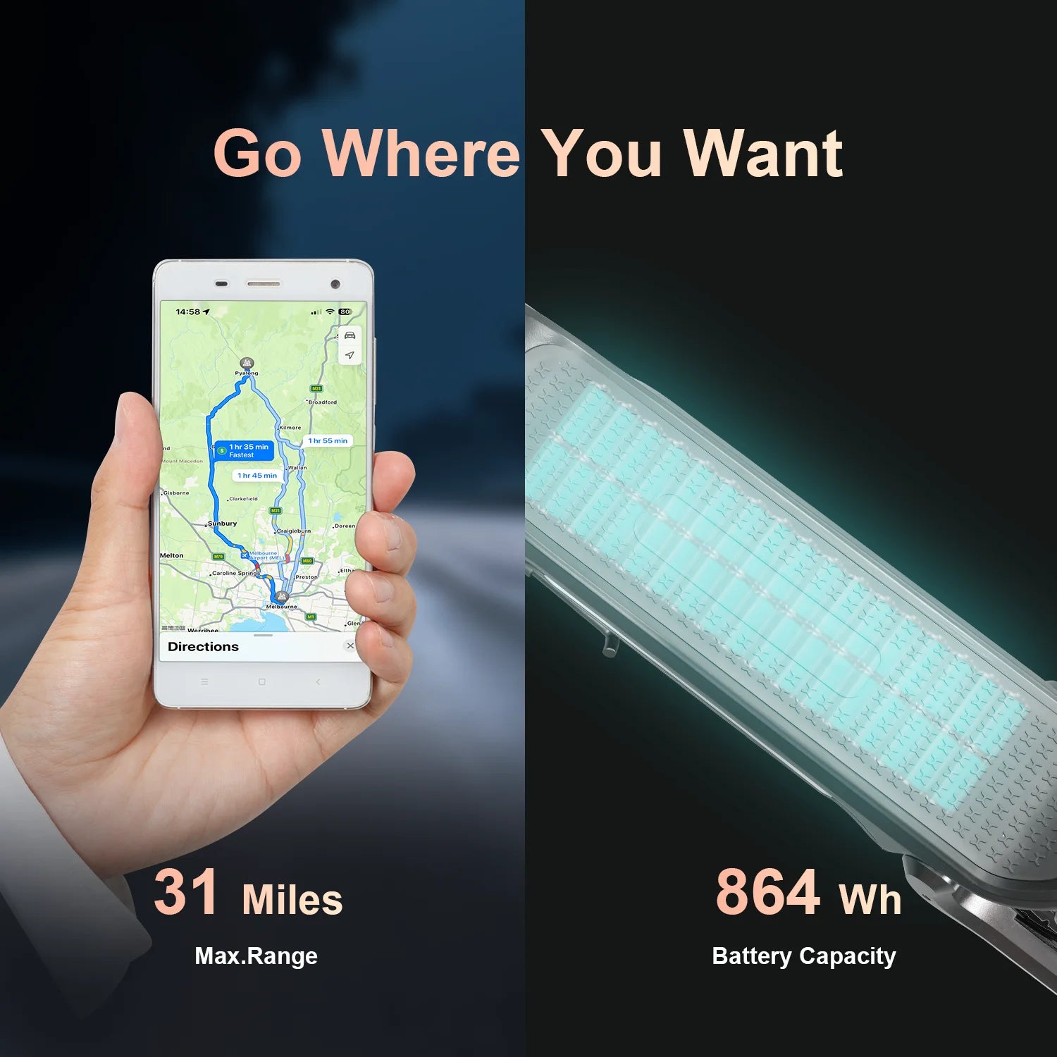 Range Per Charge: 40-60km