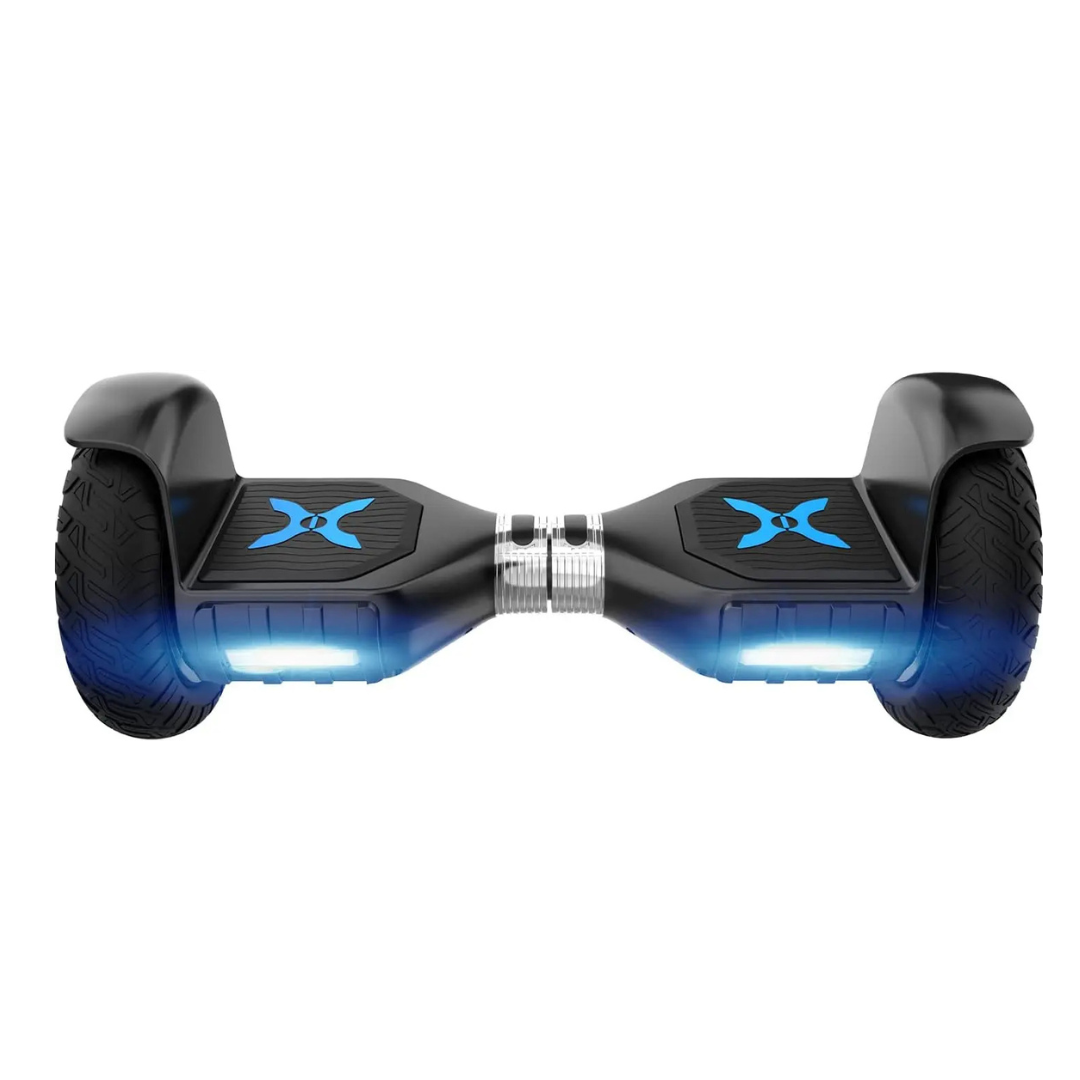 The Hover-1 Ranger Pro hoverboard is equipped with massive 10” off-road tires and dual 300W motors, primed for off-roading adventures. It’s color-changing LED lights and spinning rims are sure to impress others and make the riding experience even more fun. Travel up to 7 mph and up to 7 miles for hours of fun on a single charge! This sturdy hoverboard supports riders weighing up to 264 pounds and has a built-in Bluetooth speaker so you can play your favorite music while you ride. You can even adjust the lighting settings and the riding difficulty through the Hover-1 Hoverboards app. You’ll feel like a pro hoverboard rider in no time with the Ranger Pro!