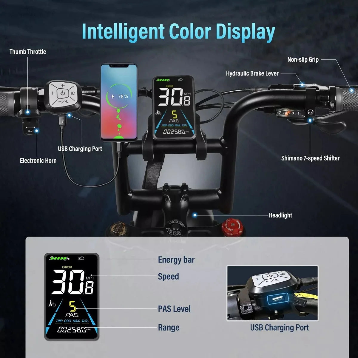 Electric gear: 0-5 power-assisted mode/electric mode step.
