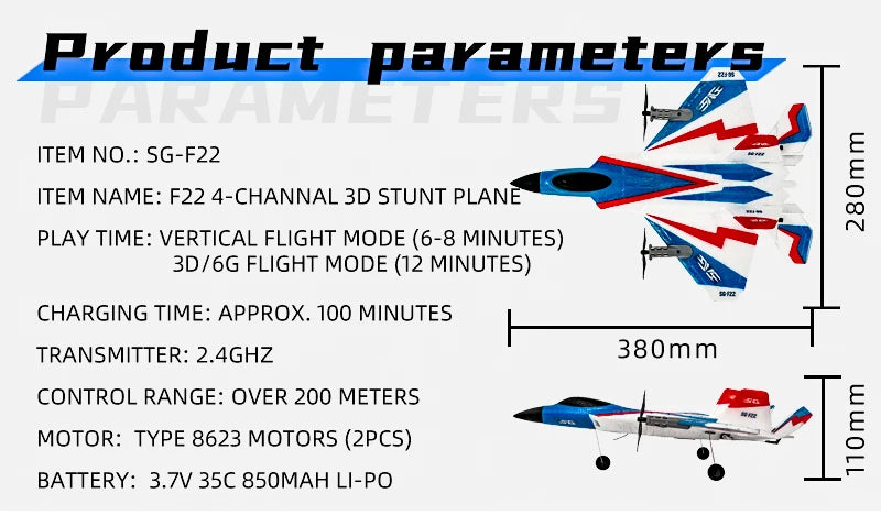 SG-F22 RC Airplane 3D Stunt Plane Model 2.4G Remote Control Fighter Craft Glider Electric Rc Planes Toys For Children Adults