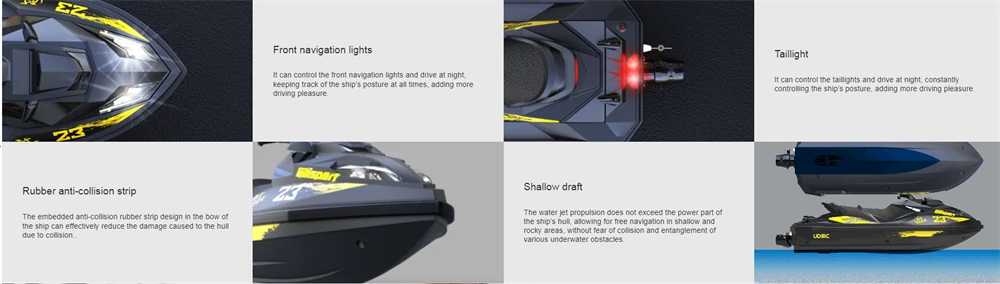 Spray pump structure, controllable navigation lights, anti-collision rubber strip, simulation design, one click acceleration,