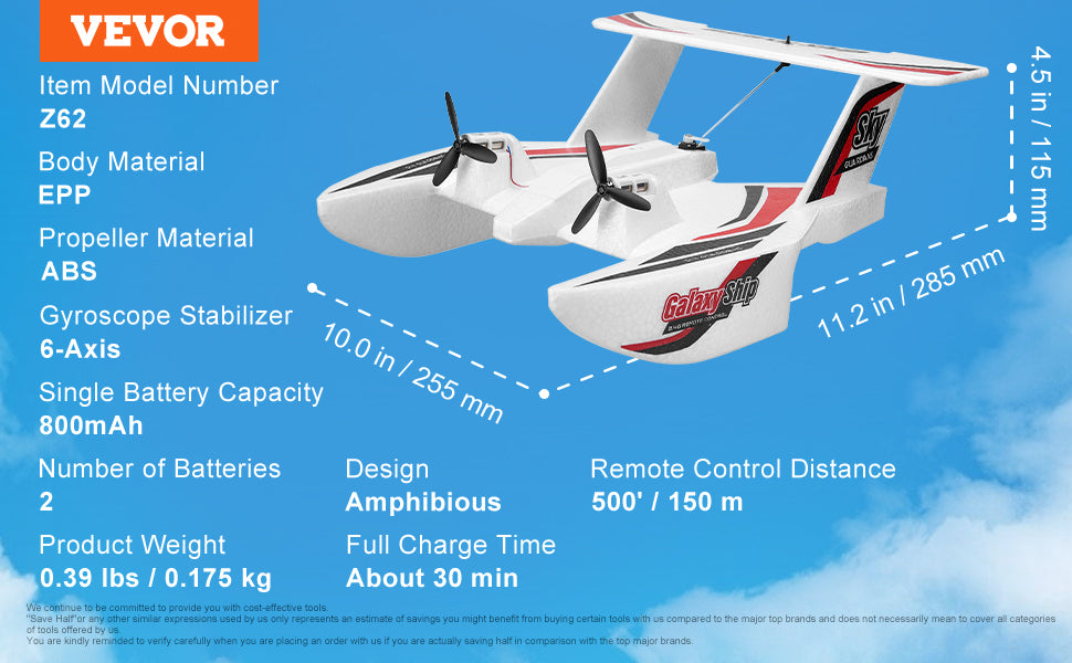 Lightweight & Durable: Crafted from high-quality EPP material, our RC airplane is lightweight yet tough enough to handle bumps and crashes. Its sturdy construction boosts durability, ensuring it stands up to outdoor conditions. Even if the plane overturns on the water, its built-in functions and controls ensure that it can be maneuvered back.