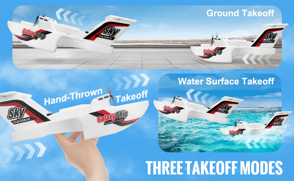 Multi-Functional Design: Featuring amphibious capabilities, 3 channels, and 2-speed modes, this RC plane can take off from the ground, hand-launch into the air, or smoothly glide from water. Enjoy unrestricted outdoor fun with enhanced maneuverability. Whether you're a novice or a seasoned pilot, it ensures a perfect flying rhythm.