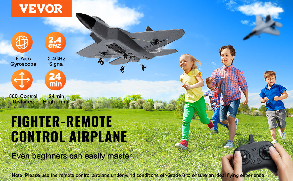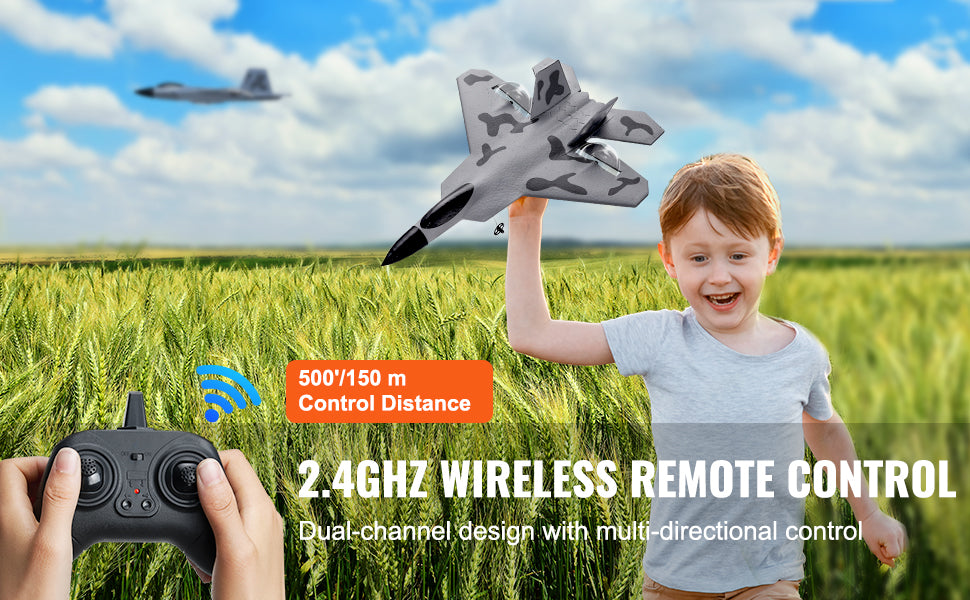 2.4 GHz Wireless Control System: Take full control with the easy-to-use remote. Fly up, down, left, and right with a range of up to 500'/150 m. The 2.4 GHz frequency ensures a reliable connection, allowing multiple remote control airplanes to fly together hassle-free—ideal for friendly competitions!