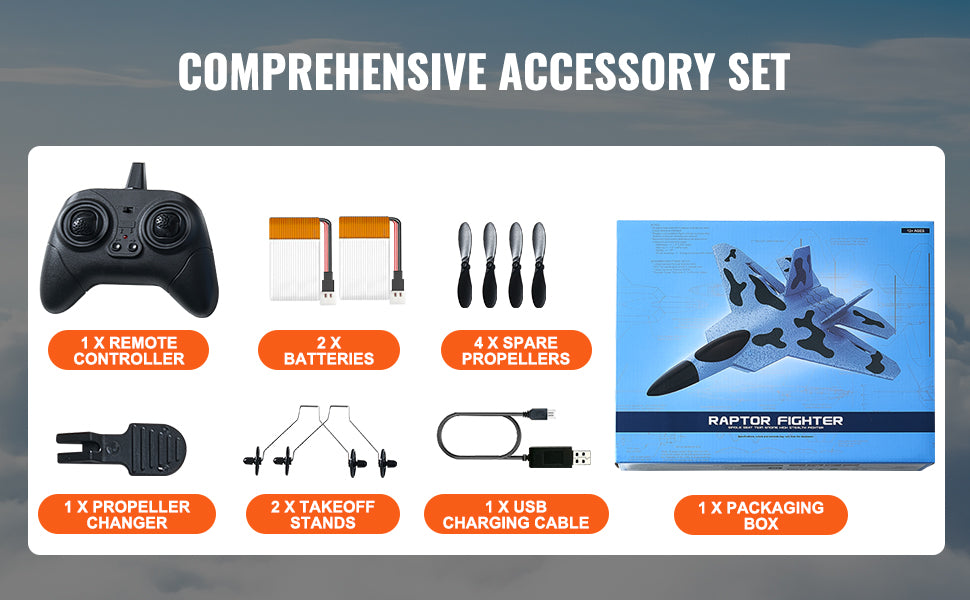 F-22 Fighter Design: Stand out with this F-22 fighter simulation design, adding imagination and excitement to your flying experience. Our remote airplane is perfect for adults, kids, beginners, and anyone who loves aviation fun. Spare parts like batteries and propellers keep the fun going without interruptions.