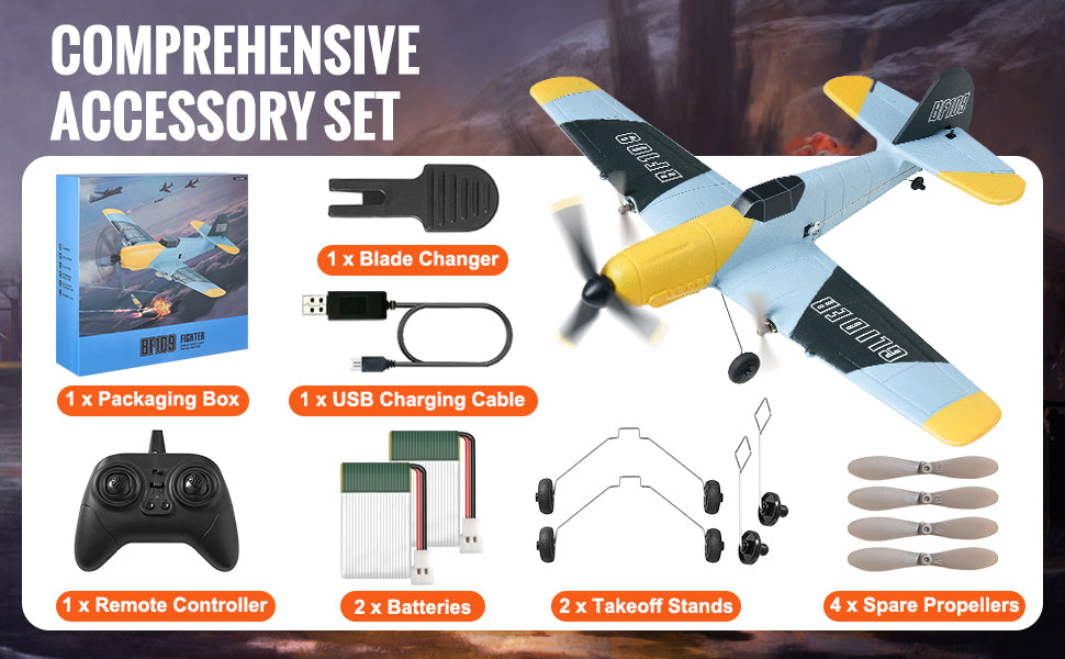 WWII Fighter Design: Stand out with this WWII fighter simulation design, adding imagination and excitement to your flying experience. Our remote airplane is perfect for adults, kids, beginners, and anyone who loves aviation fun. Spare parts like batteries and propellers keep the fun going without interruptions.