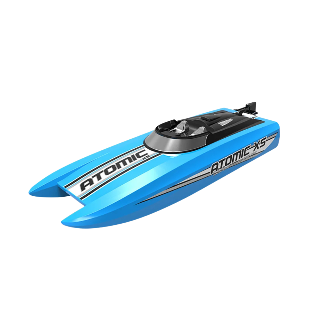 This Remote Control Boat ATOMIC XS is a small size but with excellent performance. Due to the well designed structure with water fins and trim tabs keep the small boat stably running in pool, lake or even river,basic function has forward,backward,turn left/right,reverse function