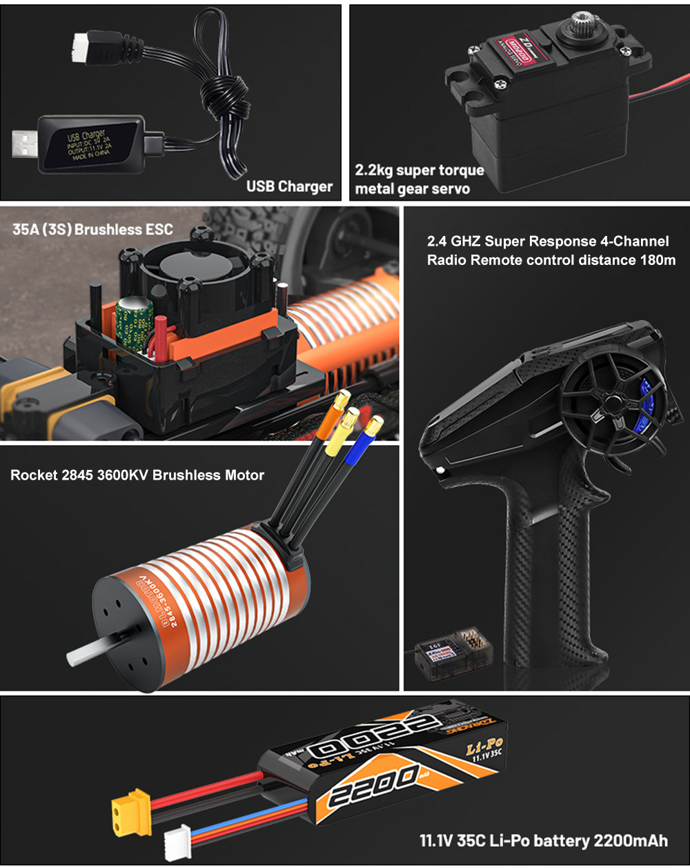 9. 35A independent brushless ESC,With high-speed fan,XT60 connector starts smoothly,responds quickly, supports high-speed and stable operation.