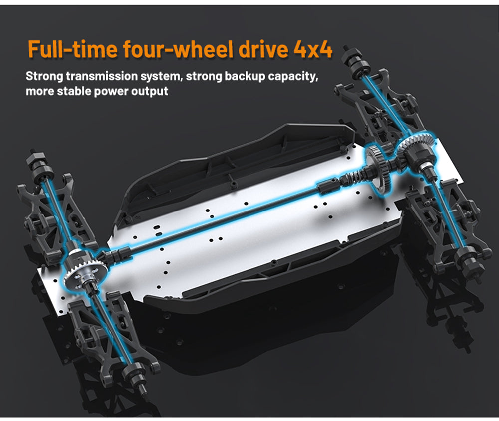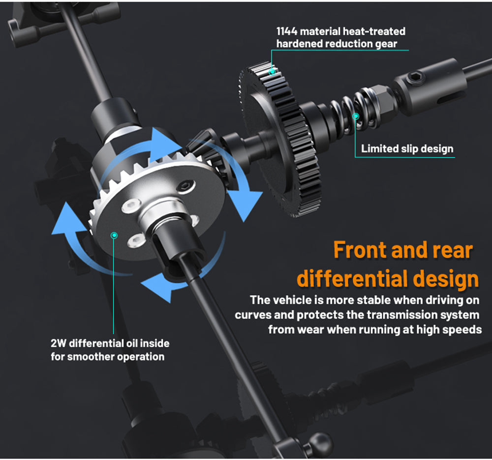 6. Powerful drivetrain: all-metal differential with damping, overload limited-slip set CNC steel ruler, steel CVD drive shafts.